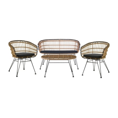 Σαλόνι Naoki pakoworld σετ 4 τμχ φυσικό pe rattan-μαύρο μέταλλο-γυαλί 148x70x72εκ