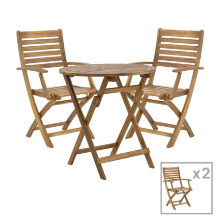 Τραπεζαρία Joter-Carpuva pakoworld σετ 3τεμ πτυσσόμενο φυσικό μασίφ ξύλο ακακίας Φ70×74εκ