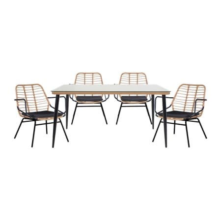 Τραπεζαρία Naoki A pakoworld σετ 5 τμχ rattan φυσικό-μαύρο μέταλλο-γυαλί 160x90x78εκ